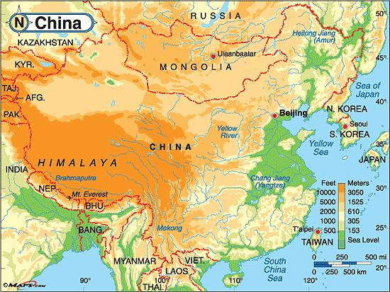 China elevation map. China altitude map (Eastern Asia - Asia) to print. China altitude map (Eastern Asia - Asia) to download.