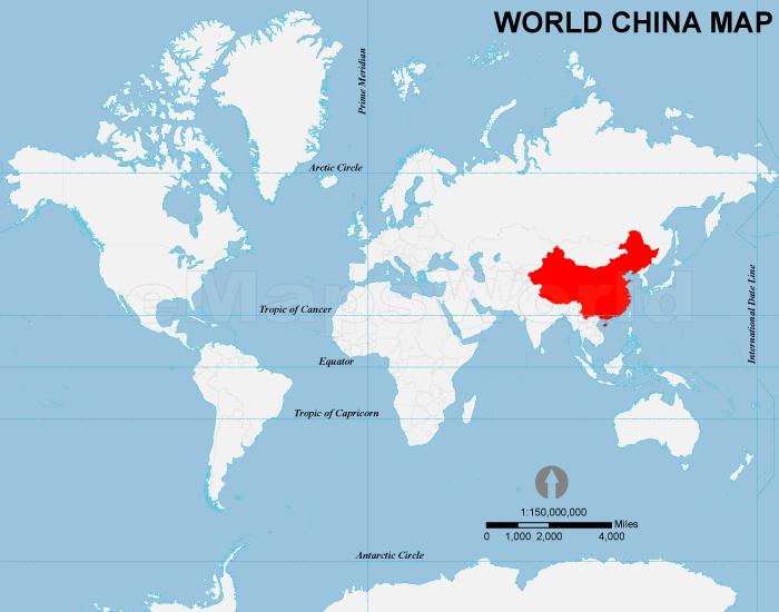 China on map of world