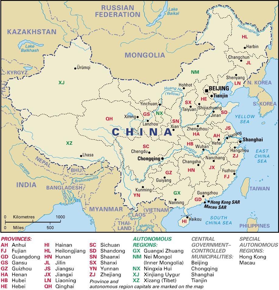 China provinces map with capitals