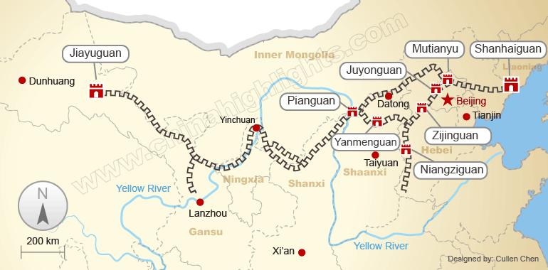 Great wall of China on map. Map of great wall of China (Eastern Asia - Asia) to print. Map of great wall of China (Eastern Asia - Asia) to download.